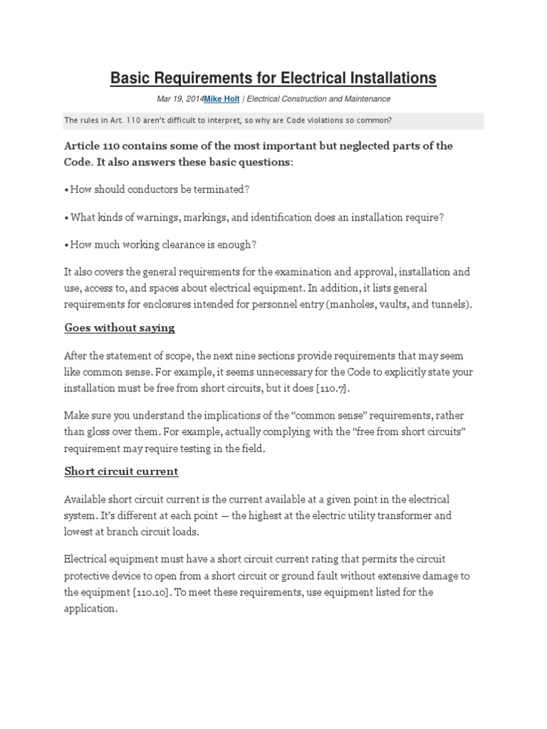 Article 100 Basic Requirements For Electrical Installations Electrical Wiring Electromagnetism